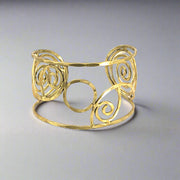 A swirl of golden spirals and playful circles bring energy and creativity to the Spira d’Oro Cuff. Handcrafted with a touch of whimsy, this bold cuff tells a story of movement and imagination—made for dreamers with an edge.