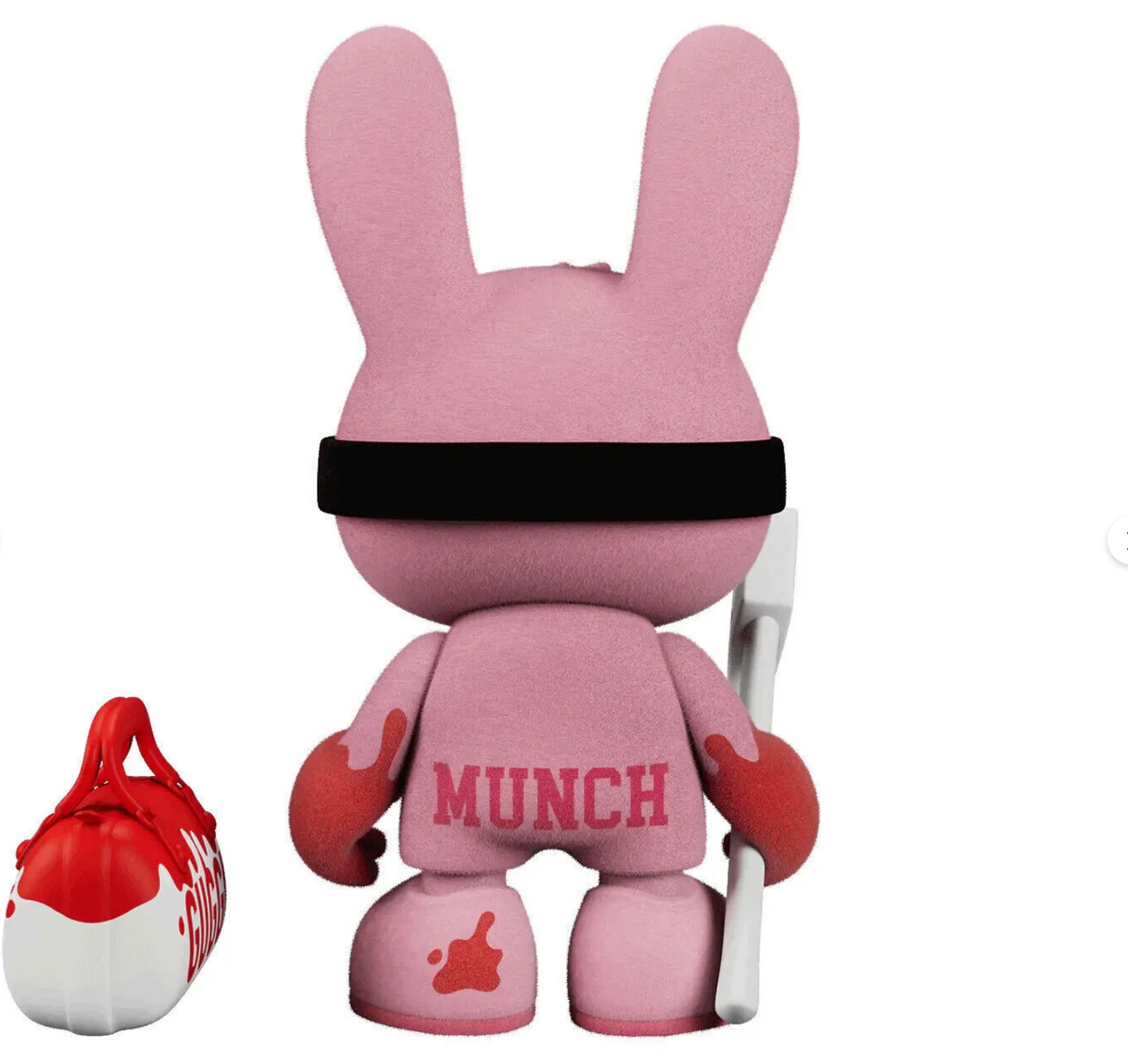Meet Insomniac Surprise Munch, the final edition in Superplastic’s exclusive two-toy series designed by the synthetic celebrity and toy designer, Guggimon. This 8-inch, soft pink flocked vinyl figure is both horrifying and captivating, featuring bloodthirsty accessories and a removable mask that reveals immobilizing eyes—adding a layer of eerie charm to your collection.