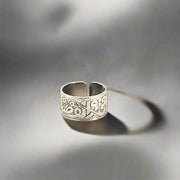 Art meets sentiment with this Arabic Calligraphy Ring curated by Egyptian designer Samy Amin. The delicate script wraps seamlessly around the band, creating a unique piece that’s both personal and powerfully stylish.