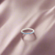 Understated and elegant, the Sapphire Eternity Band by La Bottega di Layla is crafted in sterling silver and adorned with a full circle of deep blue sapphires. Its minimalist yet dazzling design makes it perfect for everyday wear or as a refined stacking ring. A versatile piece that brings a whisper of luxe to your personal style.