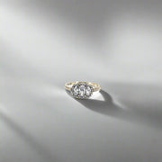 This timeless ring features a trio of luminous clear stones, each encircled by a delicate halo of pavé crystals. Set on a slender sterling silver band, it’s the perfect balance of vintage romance and refined sparkle—ideal for both everyday glam and special moments.