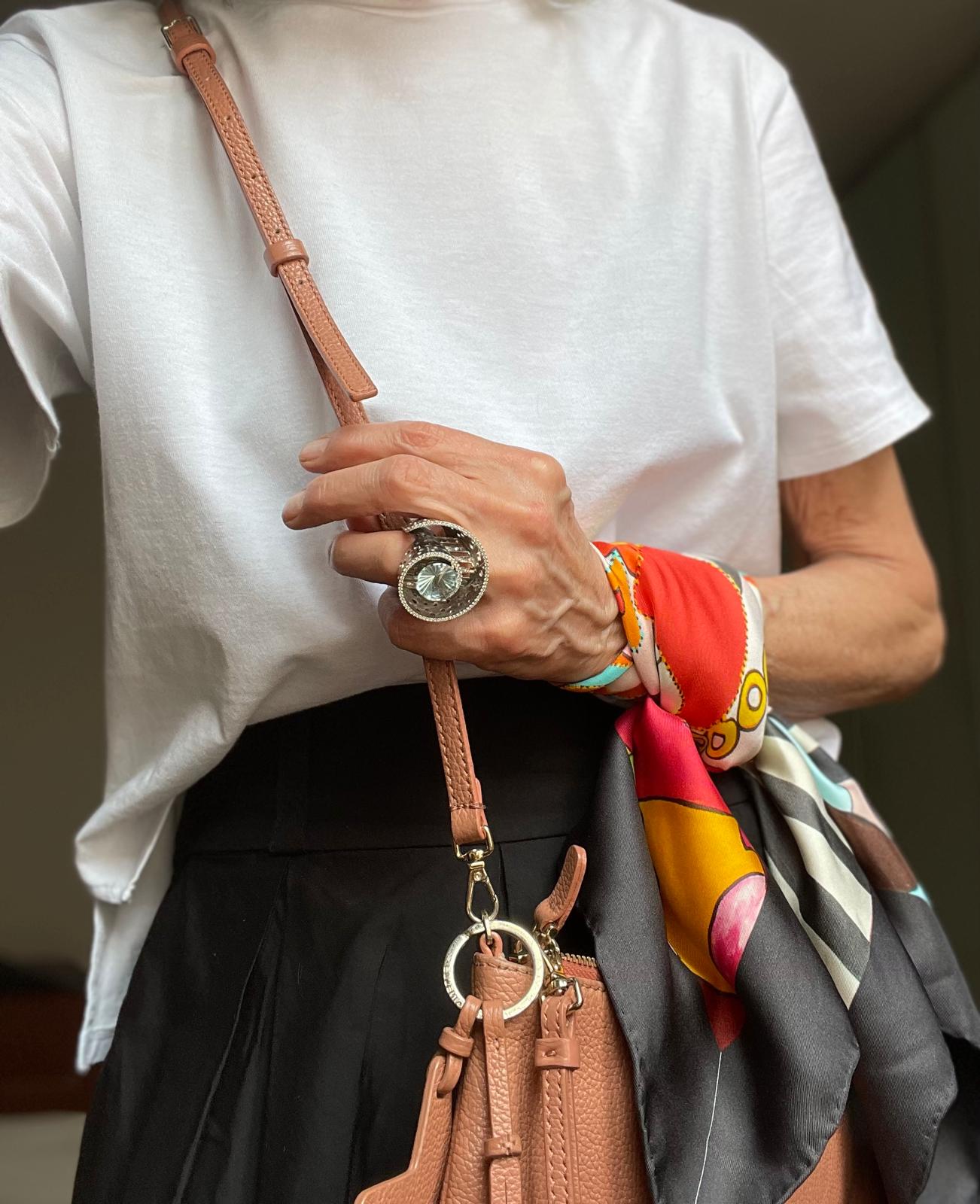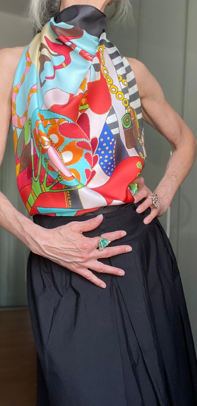 The La Madrina scarf, a refined collaboration between La Bottega di Layla and Italian artist Mieke Govaerts, is crafted from pure silk to offer a luxurious, smooth texture. Designed as a statement accessory, it effortlessly enhances any ensemble with its artistic flair and sophisticated charm. This scarf encapsulates passion and creativity, making it an essential piece for those who appreciate both style and artistry.
