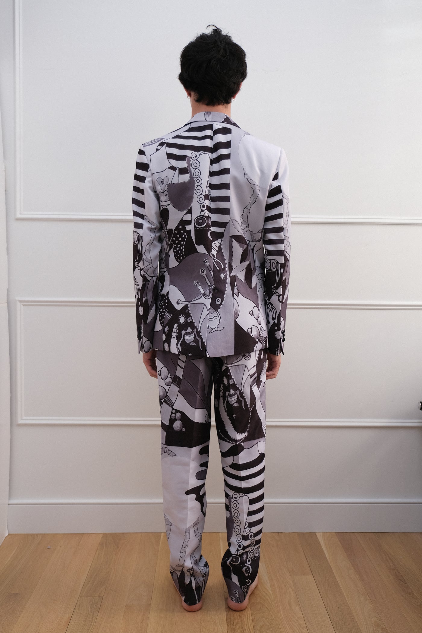 Command attention with The "Mieke Monochrome" Suit, a striking two-piece ensemble that redefines modern sophistication. This suit masterfully blends black and white into a chic, graphic statement, featuring a tailored silhouette that flatters and empowers. Imagine a sharp, architectural cut with unexpected details – perhaps a contrasting lapel, a playful asymmetric hem on the jacket, or bold piping that highlights its impeccable lines. Crafted from luxurious fabric with a subtle texture, the "Mieke Monochrome" Suit embodies an understated elegance that's both timeless and utterly contemporary, perfect for the woman who owns every room she enters.