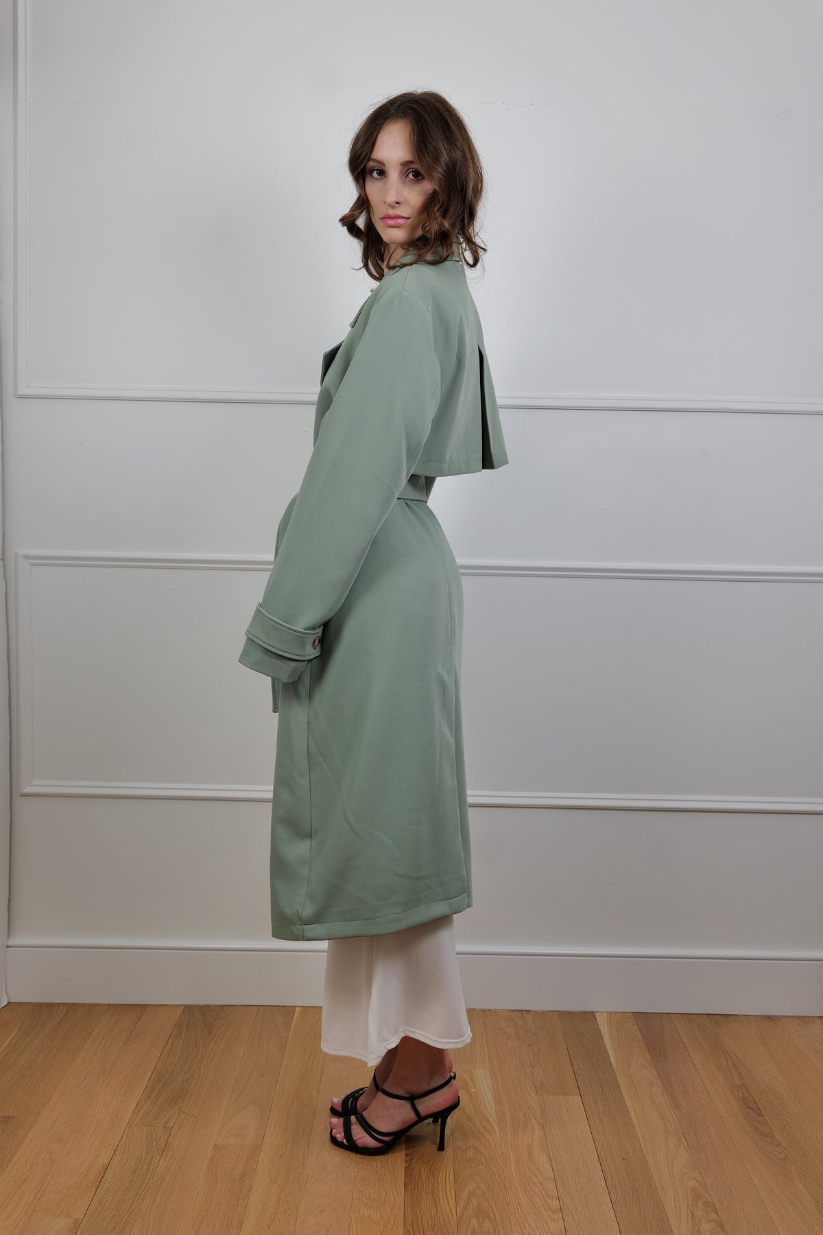 Elegant Comfort by Bagatelle for Transitional Weather This light green coat blends refined style with practical warmth, perfect for crisp autumn days. Crafted with a soft yet durable fabric, it offers a flattering silhouette that enhances your seasonal wardrobe. Its muted green shade adds a fresh, sophisticated touch, making it easy to pair with both casual and formal outfits. Designed for comfort and versatility, this coat ensures you stay both stylish and comfortably layered as temperatures cool.