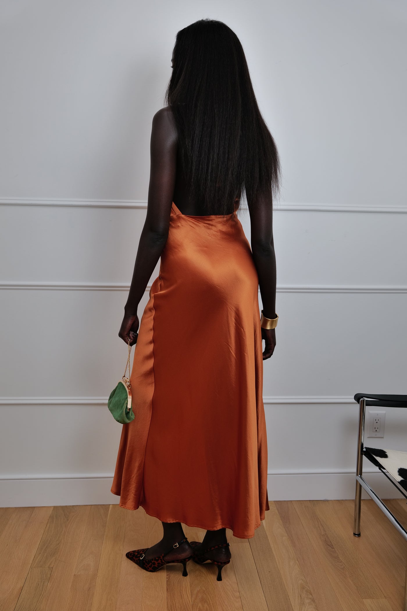 Preloved - “Sole Bruciato” Open-Back Long Satin Dress